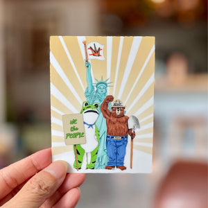 Make your voice seen with our collection of durable, eco-friendly stickers that stand up to rain, sun, and time. Each design champions care for our environment, democracy, and the community we share.